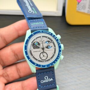 Feature Detailed Description Brand Omega x Swatch Collaboration Model Mission on Earth – Polar Lights Reference Official Model Number SO33L103 Case Material Turquoise Patented Bioceramic Composite Movement High-Precision Swiss Quartz Chronograph Dial Type Dark Blue with Unique Silver Sparkles Glass Box-Shaped Bio-Sourced Material Case Diameter Standard 42.00 mm Menswear Profile Case Thickness Sleek 13.75 mm…